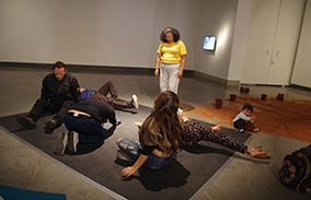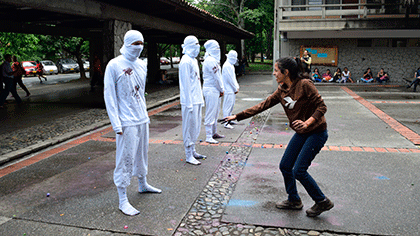 Acá los cuerpos son medios que hablan por ese cuerpo social, interlocutores de comunidades, mediadores de una sociedad silenciada por la opresión. Ellos señalan lo que nos afecta a todos y al todo, están agobiados por la situación actual e intentan desencadenar micro protestas que puedan crear conciencia ciudadana y compromiso social.